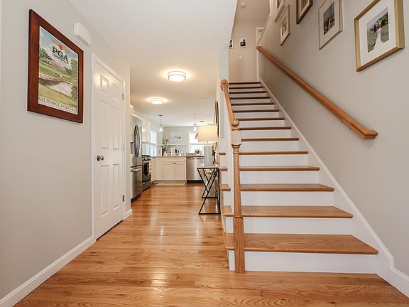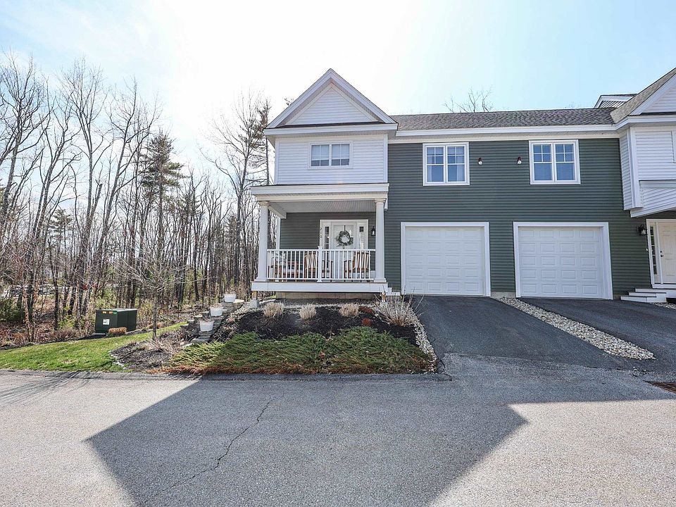 Rare offering in the highly sought after "Cottages at Woodland Pond". This commuter friendly, METICULOUSLY maintained like NEW END unit Townhome is now available for the first time. Step onto a welcoming covered porch and into your spacious and bright foyer. Here you're greeted with gleaming hardwood floors and a beautiful view of the stunning front-to-back open-concept layout. Off the foyer you have direct access to the first floor half bath, coat closet/pantry, and one stall ATTACHED garage. Heading into the heart of the home, you'll find the gorgeous eat-in kitchen/living area. No details have been overlooked here! The kitchen boasts stunning white custom cabinetry, a Carrara marble-like tiled backsplash, gleaming quartz countertops, and a stainless steel appliance suite including a GAS range and oven with an additional air-fry feature. The sun-filled dining area and living room include a gas fireplace and slider leading out to your own private deck. (Being on the end you not only get more windows and natural light but also added space and privacy out back) Heading upstairs, you have a generously sized landing leading to the primary bedroom suite of your dreams! The suite includes two large custom designed walk-in closets, as well as a GORGEOUS ensuite tiled bathroom with double sinks. Also included on the second level are two additional bedrooms and an additional full bath/ laundry room. Spacious lower level with FULL windows and great potential to finish if one chooses!