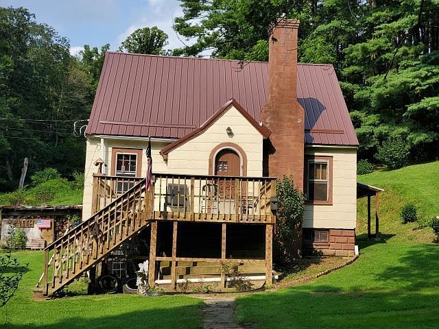 1.5 story Home with galley style Kitchen, Dining Room, living room with wood burner, two bedrooms on the main level (one without a closet) two bedrooms on the upper level, New Metal Roof, partial basement with concrete floor and electricity, home has approx. 9.94 acres, road to back of property is accessible only by 4-wheel drive.