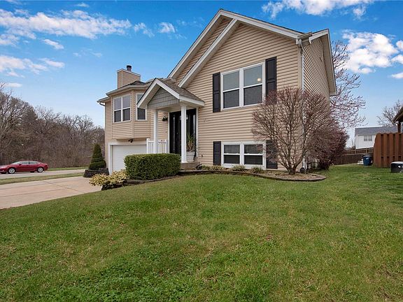 This completely updated split level home is in the Whispering Ridge Subdivision, which is a just a short distance from highway 94, 364 (Page Ext) and I-70. This location is great for commuting. This Former display home has been completely updated throughout. The home offers 3 Bed, 2 full Baths, 2 car garage, gas fireplace, vaulted great room and kitchen with Granite Countertops, large newer maintenance free deck. Also, completely renovated main bathroom with tile shower and jetted soaker tub. There are just too many updates to list here. Home is on a large Corner lot within walking distance of Harvest Ridge Elementary school. Exterior front entry way was beautifully updated with new overhang, new front door, and keyless entry. Francis Howell R-III School District! Lots of extra storage!