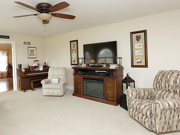 Exceptional value in a home in lovely Fountaine View Subdivision. Sited on back side of subdivision, backed up to farmland, this all brick 11/2-story is loaded with features and quality throughout. Large kitchen with lots of cabinets, pantry. Spacious 1st floor master suite with spa like master bath w/double vanity, separate shower & tub and walk-in closets. Breakfast room, dining room, living room, very large laundry/utility room off the kitchen. In-law suite with living room bath, bed, walk-in closet and kitchenette. Upstairs two guest beds have separate 1/2 baths, shared shower. 3 car 915 sf garage, and a 400 sf bonus room over the garage. Covered front porch. Large well designed deck allows view over back yard and adjacent farmland. Seller is providing a 1 year HSA Home Warranty.