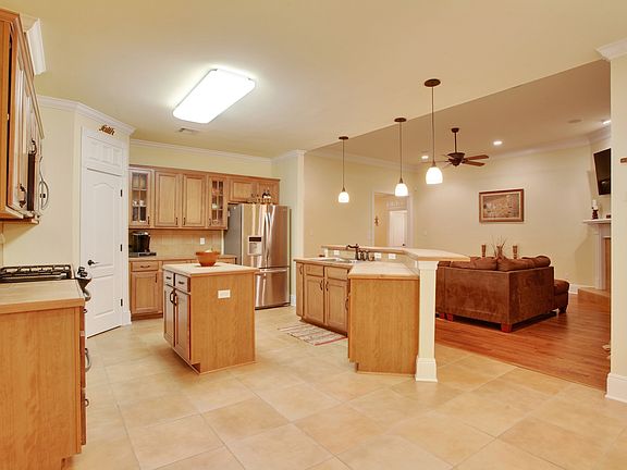 Quality and comfort are yours in this lovely home. Features incudes, spacious open floor plan, high ceilings throughout, gas fireplace in den, with hardwood floors, stainless steel appliances in kitchen, large walk in pantry & island, large master bath, 2 walk in closets, large garden tub, separate shower, double vanities. 2 bedrooms one side, 2 on the other. Great floor plan. Fenced in backyard w/ covered patio. Great for entertaining. Sprinkler system, irrigation water system installed