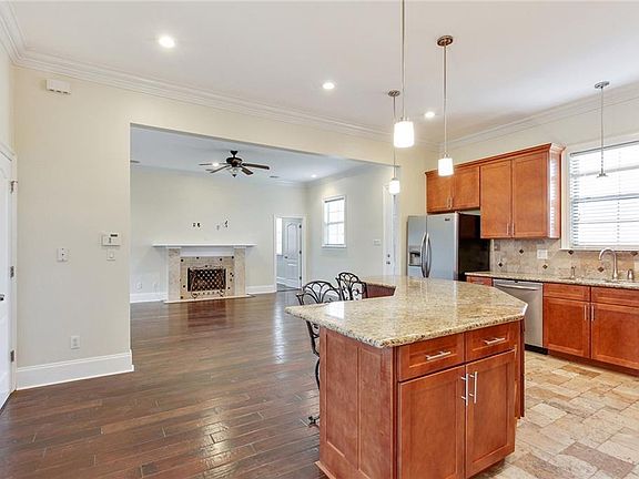 Featuring large master suite with wd burning fireplace, 5 piece bath with large custom closet. Peruvian tile backsplash is the main focal point in the spacious kitchen with lots of cabinets, granite counters, ss appliances and large island open to breakfast nook and living room, nice laundry room and half bath, lam wood and tile flooring on 1st floor. 3 bedrooms, full bathroom, bonus room, walk-in attic storage, lots of closet space and carpeted floors on 2nd floor. Double car garage, covered back patio