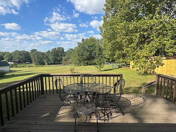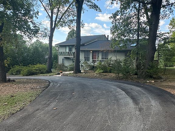 Split level 4 BD, 2.5 BA with 2 car garage and circle drive. Private acre lot with mature trees. 3 decks. Wood fireplace. Stained glass windows. Upstairs has new carpet. Large Master bedroom with private bathroom, jacuzzi tub, sitting area, large closet and deck. Second bedroom and hallway full bath. Main level has living room with fireplace, kitchen, bedroom/office, dining on beautiful hardwood floors. Downstairs has bedroom, half bath and large laundry room with washer and dryer. Ready to move in now.