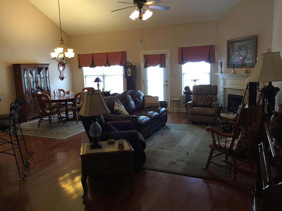 Photos do not do justice to this amazing open floor plan with soaring ceilings Huge great room that opens on to rear patio One level living with upstairs bonus room Bonus room has half bath with lots of attic storage Over sized one car garage Convenient to shopping and Luther lake walking
