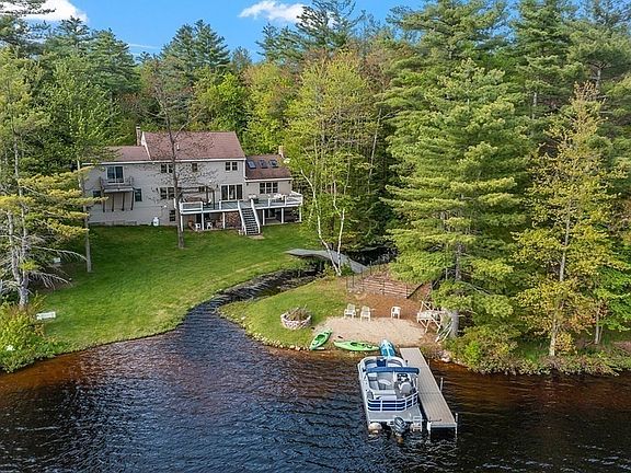 Welcome to 210 Lakeshore Drive! Beautiful lake front colonial on 1.36 acres on gorgeous Lake Watatic. 3 bedrooms (the primary bedroom suite is amazing), 3 full baths, 48'x12' composite deck overlooks the lake, hardwood floors throughout the 1st floor, granite coutertops, pellet stove insert, skylights, office, extra bonus room, 2 stall garage, 1000 additional square feet in the basement partially finished with a fireplace and 2 sliders. There is radiant heat on the 1st floor and the basement. Buderus boiler, dock, storage shed, Jacuzzi tub outside, laundry on the 2nd floor, 4 new sliders and 2nd floor windows are all new and steel I beam construction. This is lake living at its finest. Set up your private showing today.