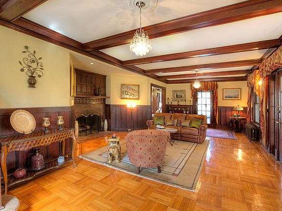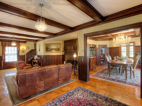 This outstanding home uniquely located on a wooded lot bordered by parklands has been updated and expanded for today’s lifestyle. Originally built in 1912, this home maintains its craftsman charm with a seamless addition. Enter through the double doors to the enclosed front porch overlooking woods. Elaborate marble tile, 2 ceiling fans and a chandelier provide the perfect spot to enjoy summer evenings. A set of French doors lead to the formal living room adorned with priceless chestnut woodwork. The recessed fireplace is without a doubt the focal point of this grand room. Built-in original chestnut bookcases, parquet wood flooring, 2 chandeliers and French doors leading to the wrap around deck set the stage for large scale entertaining. The impressive dining room with chestnut woodwork, built-in china cabinet and spacious bay window, flows into the kitchen through pocket doors leading to the breakfast room and a swinging door leading to the main kitchen area. The L shaped kitchen flows from a serving buffet to a breakfast island opening to the breakfast room. Wood flooring, Silestone and granite, double wall ovens, stainless steel appliances plus a walk-in custom pantry equip this kitchen for a serious cook. A newly updated full bath is located in the mudroom space off the kitchen. The large family room opens to the kitchen. Bathed in sunlight from the wall of windows, this large gathering space has wood flooring, storage cabinets, a fireplace with marble surround and French doors leading to the wrap around deck. A double-sided staircase leads to the second level. 3 Bedrooms are found on this level. The master suite boasts French doors leading to the side deck and a spacious dressing area with 2 large closets. The second bedroom on this level also has access to the second level deck. The newly renovated hall bath is enhanced with marble and subway tiles, a glass enclosed shower with large rain head and a skylight. The third level provides 3 more bedrooms plus a stunning, freshly renovated bath. The largest bedroom on this level could be used as an alternative master bedroom with its deep closet and close proximity to the new bath. Additional space is available in the walkout lower level. The new addition added a large recreation room . The original basement has been finished and includes a large “pool table” room with wet bar area, a finished storage room and a laundry area. Adjacent to the home is the detached 3-car garage with a home office above. Beautifully finished, the office offers the perfect space to work from home. Tucked into a wooded lot bordered by borough land on 2 sides, the home offers absolute privacy and wooded views just steps from the Boulevard walking path and the town beach. Professional landscaping enhances the curb appeal and evergreens border the front enhancing the sense of privacy. The long driveway is lit with lampposts and the front blue stone walkway leads to a charming front patio. Updated, expanded and perfectly sited bordering town land, this home is the ideal abode to enjoy the award winning town of Mountain Lakes. Top schools, 9 lakes, walking paths, parklands, public tennis courts and the small town feel are what you will find in Mountain Lakes. Updates, plenty of space, a level yard and charm from a bygone era are what you will find at 201 Laurel Hill Road.