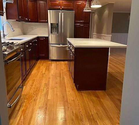 Look no further...You will love this ready to move in 3 bedrooms, 3 full bath home. The first floor offers an open concept floor plan with a kitchen that features stainless steel appliances and quartz countertops. A very nice size dining room, living room with a wood-burning fireplace and gleaming hardwood floors. This home features a fairly sized family room or an at-home office. Three bedrooms, a Master bedroom on main, one bedroom main, with one bedroom on the upper level featuring a full private bath, large walk-in closet, plus a third level room with a large closet for storage. Pull down attic for storage along with a partially finished full basement, two large finished rooms, a full washer and dryer set up, and lots more storage space. Central air, tankless water heater, with 2 off-street parking spaces, sitting on an amazing fenced in corner lot. This charming home with the modern amenities of today will not last! Close to train station, shopping, restaurants, and schools. COVID-19 Guidelines must be followed. Mask must be worn at all times.