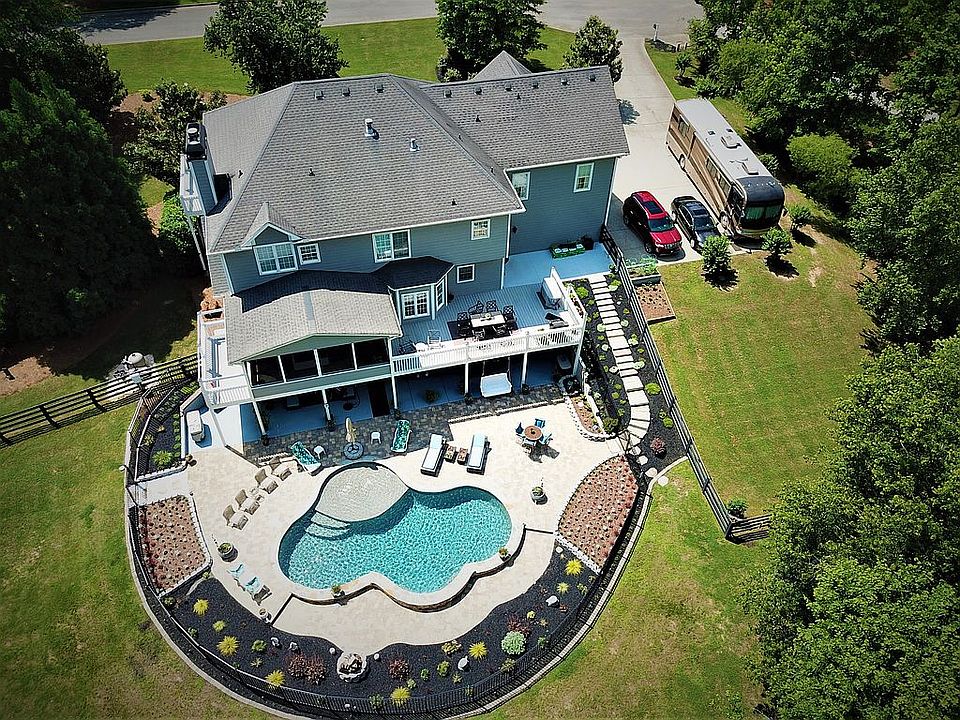 Cstm Built Southern Traditional Home Sits On 2.07ac Cul-de-sac Lot W/beautiful Stream-total Privacy! Front Porch W/ceiling Fans, Formal Liv/din, Lg Grt Rm W/ Stone Fp, Gourmet Kit W/cstm Cabinetry, Granite Counters, Huge Island, Dbl Ovens & Pantry. Oversized Mstr Ste W/priv Deck, His & Her Walk-in Closets & Beautiful Spa Bath. Spacious Secondary Bedrooms. Lg Scrnd Porch W/slate Floor & Vaulted Ceiling. upstairs 4th Br Is A Perfect Guest Or Teen Suite W/sitting Room, Sleeping Area & 3 Closets. Fantastic Back Deck, Cstm 2 Car Gar W/addit Storage That Equals 3rd Bay! Basement finished with marble fireplace, great room, bedroom, bonus room, full bath, full kitchen with granite counter tops, private entrance and more! Back yard fully fenced with large deck and screened in room and full width covered cement patio. Walkout basement leads to custom gunite pool with three water shears on back elevated wall, large tanning ledge with two fountains and fully landscaped surroundings!