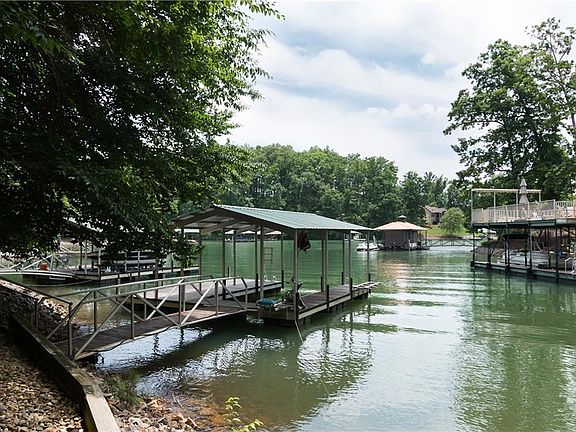 Lake Keowee Waterfront Getaway... don't miss this beautifully landscaped, low maintenance waterfront home nestled in a private wooded setting. Listen to the babbling creek off the patio as you stroll down the cart path to your deep water covered slip dock. This well maintained home features four bedrooms with four full baths, a three car capacity garage and loads of upgraded specialty items such as bamboo flooring, heated toilet seats, towel warmer, and chandeliers along with tons of extra storage. There is also a Butler's pantry by the kitchen with custom cabinets and a large storage pantry in the kitchen. There is a bright open living concept with numerous windows filled with natural light, two fireplaces, duel fuel cooking, tankless water heater for endless showers, automatic lights in the closets, several outdoor living spaces including a large covered porch. Move-in ready and like new.
