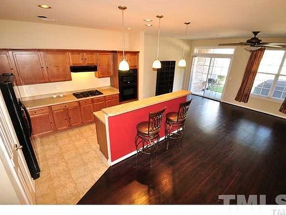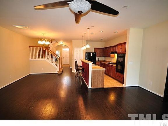 Spacious 3 BR townhome w/ 2.5 baths and 1 car garage. Open floor plan. Hardwoods all 1st floor. Kitchen w/ spacious cabinets, gas cook top, & vent hood. Master bedroom w/ trey ceiling. MBA w/ separate garden tub & shower. Backyard w/ patio. Storage unit. Awesome community clubhouse, pools, playground, fitness & basketball. Very convenient to RTP, RDU, I-540, I-40, shopping, & parks. Videos showing layout available.