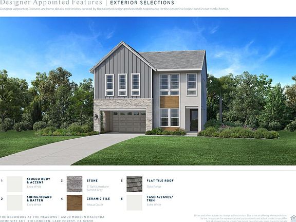 This is your chance to own a brand new Toll Brothers home at The Redwoods at The Meadows Community, and no Mello Roos. The Asilo Modern Hacienda offers 4 bedrooms and 4 baths, with a first floor bedroom and bath. Expansive high ceilings at foyer and great room, creating a grand entry. The gourmet kitchen features full height cabinets and extended cabinet upgrade for additional storage needs. The kitchen has upgrade quartz countertops and Jenn-Air stainless steel appliances (including a 6 burner stove with double ovens, 48" canopy hood, 48" side by side built-in refrigerator, dishwasher, and microwave). The home features beautifully crafted with wood cased windows, upgraded plumbing fixtures by Kohler, and solid core interior doors. The primary suite includes a large walk-in closet, upgraded shower and countertops and a beautiful free-standing soaking tub. The home includes designer curated options and upgrades with solar panels included. The Meadows is an amenities rich Master Planned community conveniently located in the heart of Orange County in Lake Forest, right next to Irvine. Buyers can still customize and choose their flooring options. Disclaimer: Photos are images only and should not be relied upon to confirm applicable features.