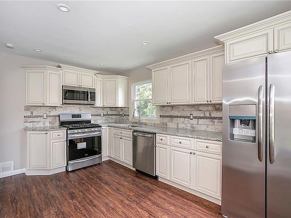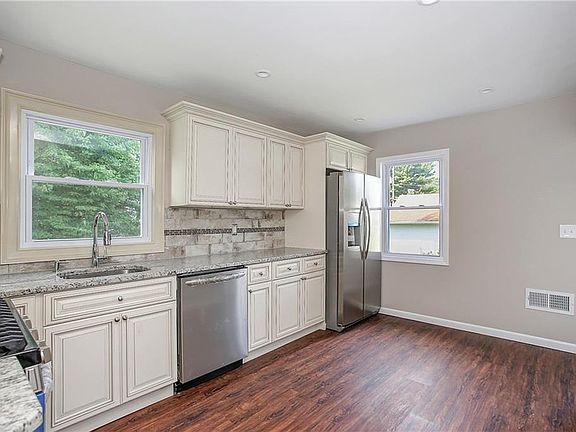 Total renovation on dead end street. NEW: roof, siding, windows, doors, HVAC, flooring, kitchen, baths, stainless appliances. First floor bedroom. 2nd floor family room. Near center of town. Additional office on 2nd level