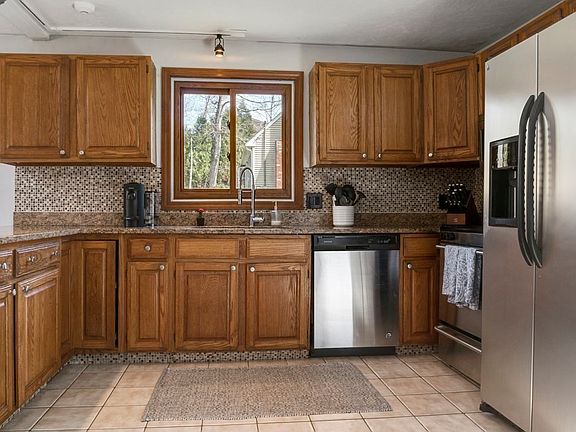 Beautiful, move-in ready, contemporary Cape. The first floor is an open concept, with sun-drenching skylights, and cathedral ceilings in the living room and dining room. The kitchen has granite countertops, hardwood cabinets, stainless appliances, and ceramic tile flooring, with a ceiling fan and track lighting. A full bath with ceramic tile, storage closet, and a nice sized bedroom with two sets of built-ins, makes for a functional space. The upstairs has another two great sized bedrooms, a full bathroom and a storage closet. New carpet throughout 2nd floor (2021). Solid 6-panel wood doors! Pergo laminate floors in dining room, living room, and 1st floor bedroom. Huge 16’x28’ rear-facing composite deck (replaced 2020) with a portion of the backyard fenced in. Ready-to-finish basement, with access to 2-car garage features Buderus furnace (2007), laundry area, and storage area. Great location just down the street from Indian Ranch and Webster Lake makes for great summers! Title V passed
