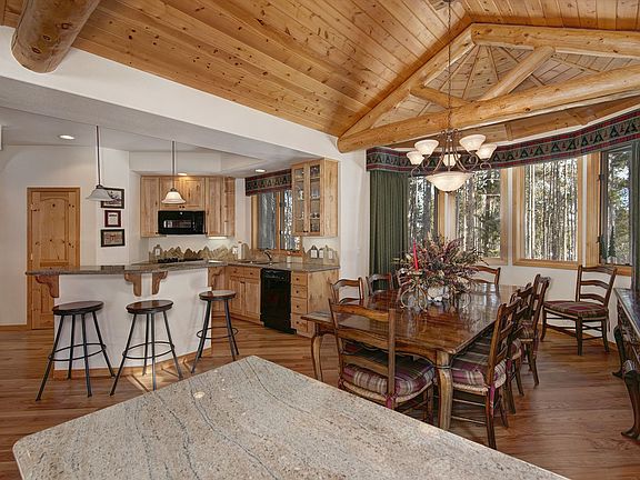 Price reduced. In the heart of Frisco, this spectacular, furnished home offers mountain views, roof-top style deck with hot tub, vaulted ceilings, spacious bedrooms, multiple living areas, wine cellar, garage and more. This second home has never been rented and has been meticulously cared for by the original owners, pride of ownership shines through. Bordering neighborhood open space on two sides is an added bonus for privacy, and the towering pine and aspen trees add to this amazing setting.