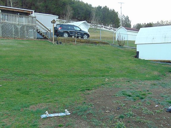 Recently updated kitchen and bathroom. Living room has wood wall half way with chair rail. Large master bedroom. The half bath has room to put a shower in. Large deck on front. Small deck on back. Insulated building and one wood storage building with metal siding are wired to electricity. The large building is carpeted and has a air conditioner. The small insulated building makes a great workshop. Large carport with paved driveway. Lower corner of yard makes a great garden.