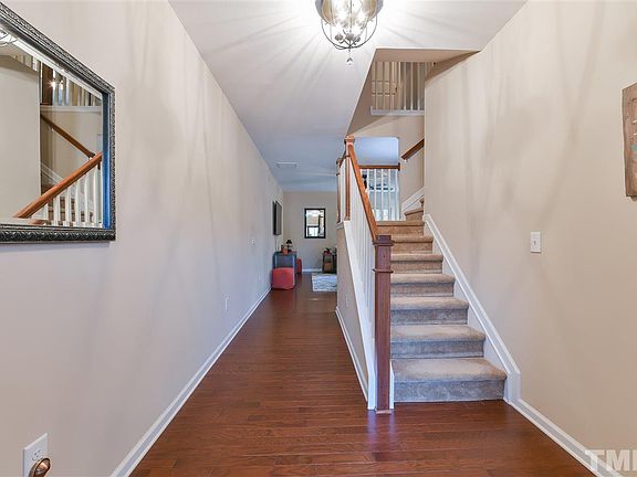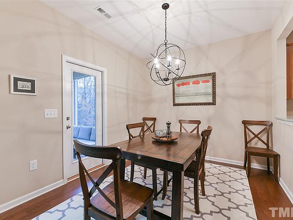 Stunning Brier Creek END UNIT built in 2016! OPEN floor plan with new kitchen featuring GRANITE & UPGRADED SS appliance package. HDMI outlets in FR & Master! HARDWOOD floors throughout first floor. FRESH PAINT and UPGRADED LIGHTING FIXTURES. Backs up to a QUIET/PRIVATE wooded area with a SCREENED-N-PORCH & PATIO. 2 car garage with built in STORAGE/WORKBENCH. 2nd Floor LAUNDRY. Google Fiber in neighborhood! Desirable Brier Creek location convenient to shopping, RTP, RDU, and 540! A MUST SEE!
