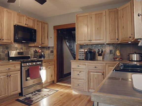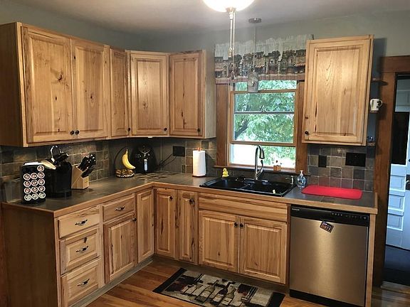Seller retiring moving closer to family so now you can own this pristine home and enjoy the beautiful sunsets with water view. Play and party in this peaceful back yard with plenty of parking for family and friends or enjoy sitting out on the front porch. All the original character remains with NEW 200 amp service, NEW wiring, NEW conversion to gas with NEW plumbing, NEW furnance, NEW hot water heater, NEW windows and COST-SAVING solar panels. Gorgeous original refinished hardwood floors throughout this home which has NEW kitchen with under cabinet lighting and all NEW appliances. Separate dining room, living room and NEW full bath on first floor. Laundry room conveniently located on second floor with three bedrooms and second full bath. Walk-up attic and walk-out basement to garage with cement flooring and a utility shower. Mature grapevine and cherry bushes. Ask about lake access.