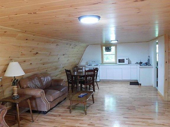 If country life is what your looking for this is the spot for you! Here you are a short walk from great brook fishing on one side of the bridge or you could launch your small boat from the other side of the bridge and troll up to Mainstream pond. ATV and ITS trails are also short distance away. Step inside this Gambrel style home and be amazed by the beauty of this light and bright, open concept, tongue and grove efficiency. If you would like more privacy this could easily be converted into a one bedroom. Below is a 26'x32', two bay, garage that provides plenty of space for vehicle storage and more.