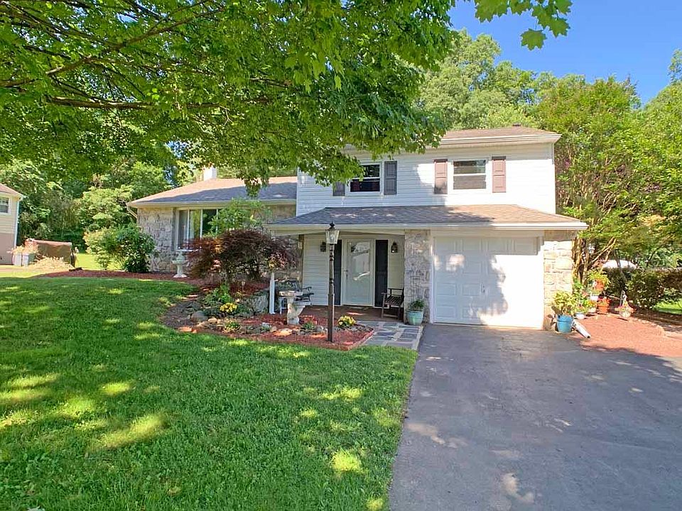 A Springtime beauty. Welcome to this lovely Woodlake Estates residence located on a truly beautiful block. Home is graced by stone front, ornamental japanese maple, hydrangeas and a perennial rock garden. Also, has a picturesque winding brick walkway leading to the backyard bordered by mature trees and rich landscaping. Inside you will admire the care, thoughtful upgrades and immaculate condition. The kitchen is remodeled with an abundance of quality raised panel maple cabinets and was opened to dining room offering lots of space for entertaining. The recently renovated family room is spacious and highlighted by gorgeous stone fireplace, plush carpeting and recent outside door. Both full bathrooms have been remodeled and show beautifully. Other amenities and upgrades include foyer entry, hardwood floors, central air conditioning, six panel bedroom doors, granite counters in full bathrooms, vinyl siding, updated lighting, recent window replacements and brand new architectural shingle roof. Everything is situated on a terrific half acre lot in sought-after Council Rock School district. This home is an exceptional value! If you missed it last time, seize this opportunity now!