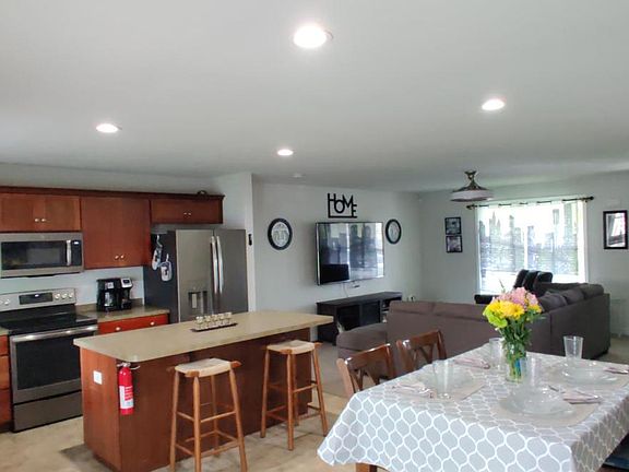 - Kitchen Island, Dining Area, Eat-in Kitchen, Carpet, Open Floorplan, Entry Level Bedroom, Family Room Off Kitchen, Combination Kitchen/Dining, Tub Shower