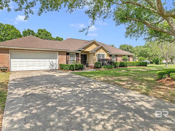 Charming Brick Home in a Prime Fairhope LocationNestled in a quiet, convenient neighborhood, this beautifully maintained brick home offers timeless curb appeal beneath the shade of majestic oak trees. Step inside to find gleaming hardwood floors, abundant natural light, and detailed moldings throughout. The spacious living room features a cathedral ceiling and a cozy gas log fireplace, seamlessly flowing into the kitchen—complete with granite countertops, custom cabinetry, and stainless steel appliances. A sunlit breakfast area overlooks the expansive back porch and private, fenced backyard—perfect for relaxing or entertaining.The generous primary suite is a true retreat, with trey ceilings, serene backyard views, and a luxurious en-suite bath featuring dual vanities with stone countertops, a jetted soaking tub, and a large walk-in shower. Throughout the home, you’ll find oversized closets offering abundant storage. A large attached double garage adds even more convenience and functionality.Located just minutes from downtown Fairhope’s charming shops, parks, and the bay, this home combines comfort, style, and unbeatable value.Don't miss this opportunity—schedule your private tour today! Buyer to verify all information during due diligence.