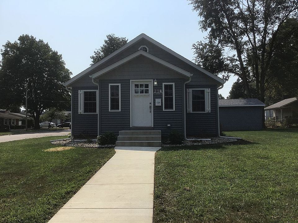 Completely remodeled and tastefully decorated move in ready bungalow. Bright sunroom entry into an open concept living room and kitchen. Kitchen has white shaker cabinets and granite countertops with peninsula. One full larger bathroom with matching vanity and granite countertop. Two bedrooms with nice closets. Clean basement with laundry hookup and laundry sink with plenty of storage space. All new heating air conditioning, plumbing, and electrical. New roof and siding.Nice sized deck and one car detached garage with new driveway and side walks. House Is situated on a large corner lot across from a city park, within walking distance from schools and shopping. This is Not just a drive by, it’s a must see!