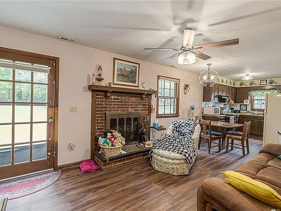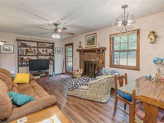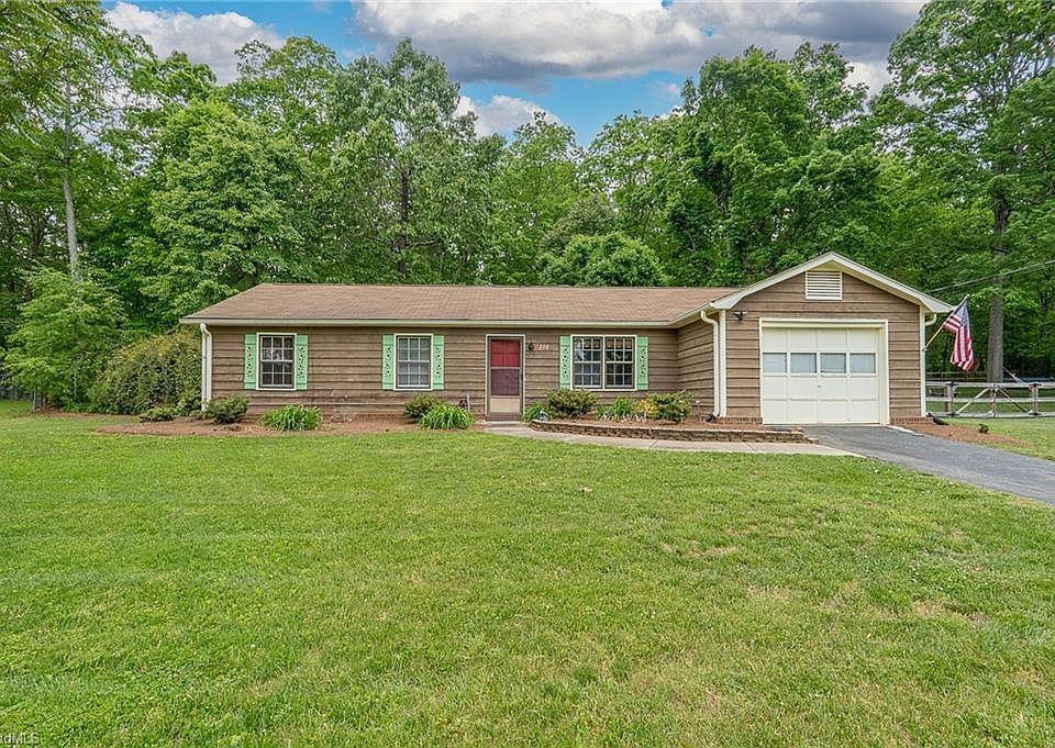 Charming one level ranch in Woodcreek. This home has 3 bedrooms, 1.5 bath. Livingroom, Den with brick wood burning fireplace and built in shelves to showcase your heirlooms or photographs. The den adjoins the dining/kitchen area. Separate laundry room. One car garage for your car or storage. The backyard is fenced in with an outbuilding and concrete patio for you to enjoy being outside. This home is convenient to the highway and downtown King. Don't let this one slip by...make this your home today!