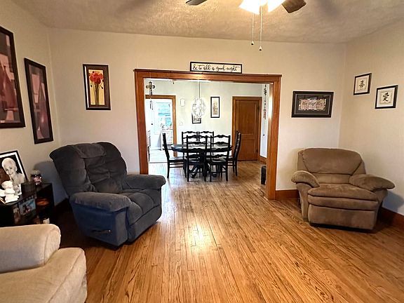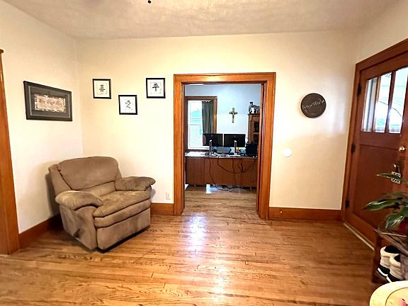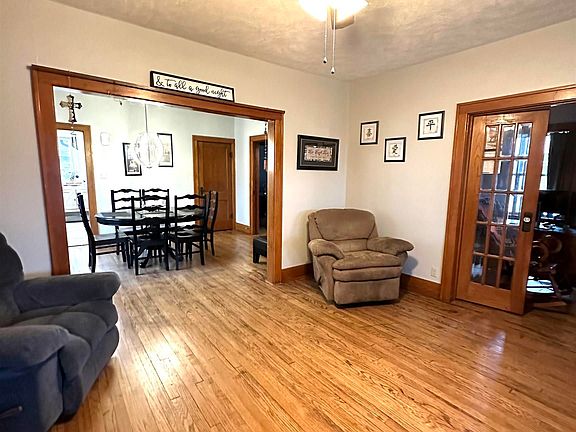 Updated move-in ready 6 bed, 1 bath home! Since 2020 new shingles, windows, electrical, plumbing, bathroom kitchen, new carpet, paint, A/C, refinished original hardwood floors and more! As you walk into the living room you'll love the french doors & openness to the formal dining room. You will appreciate the original woodwork and 2 bedrooms/office spaces on main floor. Upstairs you will find 4 bedrooms & 2 huge walk-in closets plus additional storage space. The basement is full of potential for an additional living space plus ample storage. Come see this home!
