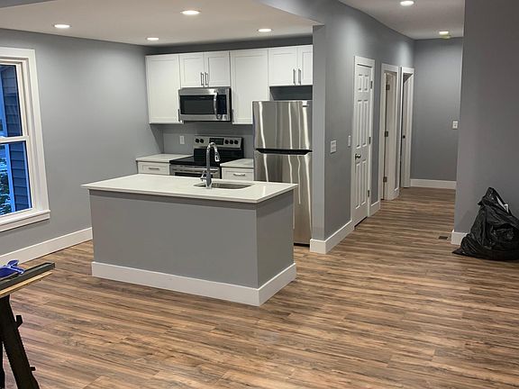 Brand new renovated two bedroom apartment on the first floor of a two unit house. Corner and quiet street location. The apartment has a separate side entry porch. Open floor plan throughout. Living room, dining, and a chef's kitchen. The kitchen has brand new stainless steel appliances and quartz counter tops that resemble marble. The apartment has laminate wood flooring throughout, except in the bedrooms which are carpeted. There is a laundry closet that can fit either stackable or side by side laundry machines. We can rent them also if needed. The bathroom has marble like tiles and a large walk in shower with glass doors. There is off street parking, but the house also has a two car garage available for rent for an extra $100.00 per month. The bedrooms are large with large walk in closets. Plenty of new windows and daylight exposure.