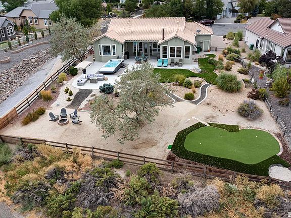 Hidden Valley Oasis- This 3 Bedroom, plus Den, 2.5 Bath, oversized 3 Car garage, and potential RV parking in a quiet cul-de-sac location with incredible views is what you have been waiting for. Enjoy incredible sunsets, city lights, and mountain views from the best lot in Hidden Meadows. The property backs up to the Common area which offers a year-round pond and walking trails right from your own backyard. Enjoy looking at all the natural habitat over your morning coffee before starting your day., Inside the home, you will enjoy plenty of space for entertaining, a covered patio to enjoy your evening BBQ’s, putting green for short game practice, and your new in ground Swim spa for your morning exercise right off the primary bedroom. Enjoy your resort style living you have been looking for in Reno.