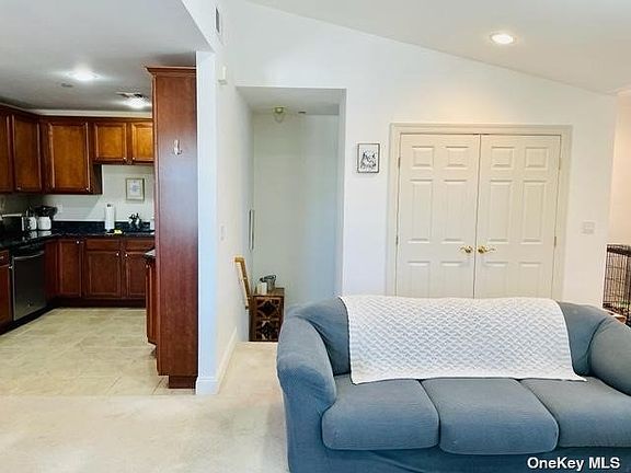Welcome to this Diamond Two Bedroom Two Full Bath Corner/End Unit. This Condo has a Lovely Open Concept w/ Vaulted Ceilings & Lots of Natural Light. The Gourmet Updated Kitchen has Gas Range, Stainless Steel Appliances, Granite Countertops & French Door Fridge. The Dining Room opens into the Living Room, Bonus Room for In Home Office/Study. Laundry Room w/ Utility Closet. Bedroom w/ Closet & Sliders to Balcony, Updated FULL Bath. Master Suite w/ Walk-In Closet & Large Windows, Updated Master Bath w/ Granite Top & Tile Bath. Other upgrades include- High Hats Through-Out, Cooling Central Air, Private Foyer/Entry Way. Amenities Include- Club House w/ Gym, Heated IG Pool, Playground, Manicured Grounds, On-Site Security. Close to- LIRR, Parkways, Golf & Restaurants. MUST SEE!