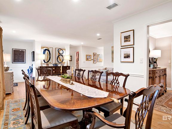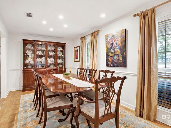 Lovely one level home has timeless charm! Beautifully designed and spacious, an entertainer's dream with the perfect combination of comfort, style, and functionality. As you walk in the front door you will be greeted by the bright inviting spaces with tons of natural light including a formal dining room and sitting area. The inviting great room has enough space for a large gathering but is still cozy for evenings at home in front of the fireplace . The elegant interior features rich hardwood floors, crown molding, and tasteful finishes with attention to detail at every turn. Many recent upgrades including a BRAND NEW FORTIFIED ROOF, new wood flooring throughout, fresh paint, and a fabulous kitchen remodel. The heart of the home truly is the gourmet kitchen, complete with marble countertops, painted cabinetry, new GE Cafe appliances, opening to both the adjoining spacious breakfast room and a coffee/wine bar area. A generous primary suite is a serene retreat, offering a luxurious en-suite bathroom with a soaking tub, separate shower, marble vanity, and walk-in closet. There are three additional bedrooms including a large ensuite bedroom that could be another primary suite and two more comfortable size bedrooms each with ample closet space and easy access to a full bathroom.Stepping outside the interior spills seamlessly into incredible outdoor living with both a gracious screened porch as well as an open porch overlooking the private, fenced backyard with beautiful, mature landscaping. Exterior storage is plentiful with an adorable shed and a tall crawl space that can be used for lawn equipment and your outdoor toys complete with a new dehumidifier. The city tennis center, pickleball courts, walking track and newly installed Fitness Court are just across the street. This property is a rare find in Downtown Fairhope! Don't miss the opportunity to own this stunning home that effortlessly combines elegance with everyday convenience. Buyer to verify all information duri