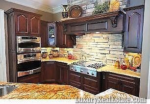 STUNNING estate home filled with casual elegance. Gorgeous custom trim + detail thru-out. Tigerwood floors, elaborate stonework in family, kitchen + veranda. Great room w/ stately 2 story stone fireplace; filled w/ natural light, designer kitchen w/ custom detail + finishes. Fabulous outdoor veranda w/ wood fire, built-in bbq's coffered ceiling overlooking private wooded views.