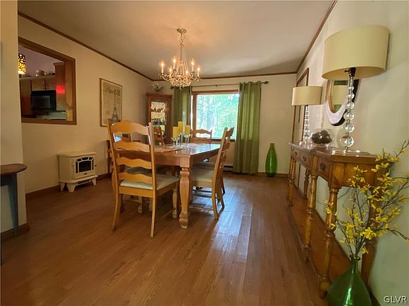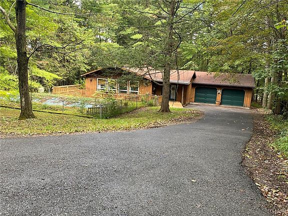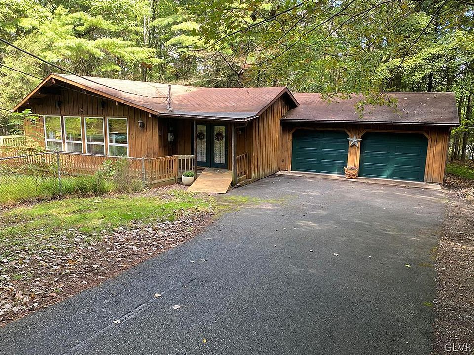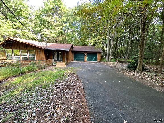 Single home situated on nearly an acre and a half wooded lot. The exterior and interior of this home contribute to the "woodsy" feel of the environment. Home features a large dining room, open concept kitchen looking into the living room area with a beautiful cathedral ceiling and real wood beams spanning both rooms. 2 bedrooms each with views of your serene wooded and private property. Large 2 car attached garage with brand NEW doors to keep your cars frost and snow free on cold mornings and cool and clean in the summer. The large basement is partially framed and offers many possible uses. Laundry is conveniently located on the first floor. Close to Beltzville Lake, Blue Mountain Skiing, Appalachian Trail, the Poconos and more. Will include the washer, dryer and refrigerator. all furnishings can remain as well. For this price, don't let it get away.