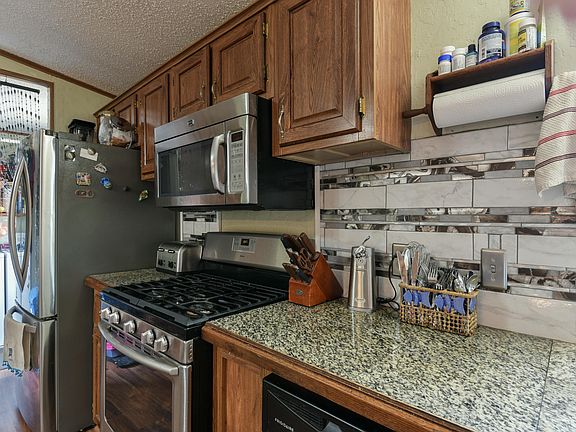 - Included: Propane Cooktop, Dishwasher, Disposal, Electric Water Heater, Free-Standing Gas Oven, Microwave, Refrigerator