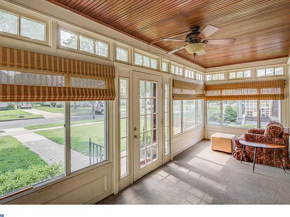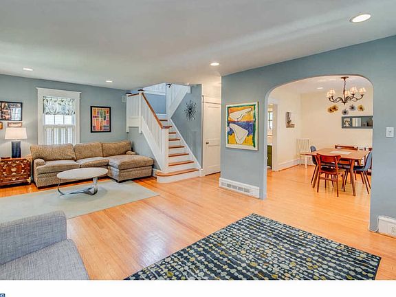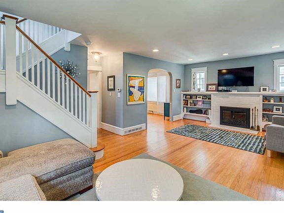 This house will not last long! This two-story colonial home in the beloved Bluebird section of Haddon Township is lit with bright, clean sunshine. Updated recessed lighting, beautiful hard wood floors, and fresh paint-colors make it a sparkling gem. You enter the home into a newly carpeted enclosed front porch, which is set off by transom windows and a glass-paneled door. This room has heat and air-conditioning, making it an all-season spot to play, read, or entertain/visit with neighbors. The large, open-concept living room is accented by a brick, wood-burning fireplace which has just been re-mortared and cleaned ready for use on those chilly evenings. There's built in shelving and an arched doorway to a dining room. A classic, turned-staircase with landing and fixed accent window showcases the old house charm throughout. An ample laundry/powder room flanks an eat-in kitchen with built-in bench seating and pendant chandelier. Kitchen features energy efficient windows and appliances including a double oven. Upstairs you'll find three bedrooms with refinished wood floors, updated windows, and upgraded ceiling fans. The master bedroom features a new modern ceiling fan, large closet and is internet/cable ready for end of the day unwinding. The large, full bath upstairs features trendy, clean black and gray tiles, shower, and a pedestal sink. There's also a full staircase leading to the third floor, which is insulated, has new energy efficient windows and is just begging to be finished. Possibilities are endless-playroom, office, or a gorgeous master suite. Lighting throughout the house is updated with all knob and tube removed, ceiling spots, traditional/modern sconces and chandeliers and Bose sound system wired throughout the house and back deck. Out the back door is an attached, newly refurbished wooden deck, and a detached garage. The professionally landscaped yard features a new, updated irrigation system and a brick paver walkway. This move-in ready house in a lovely neighborhood is waiting for your family to call home!