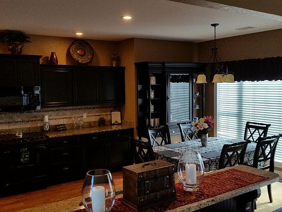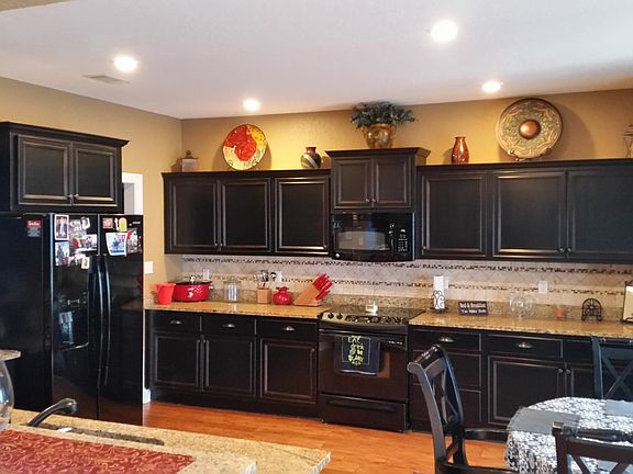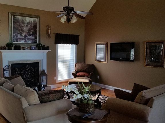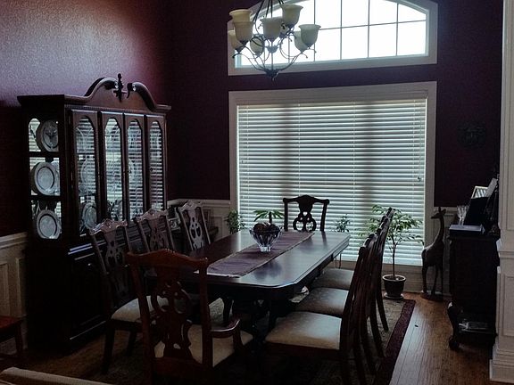 Beautiful 4000+ sqft 5BR/4BA house on spacious fenced in lot in family-friendly neighborhood. Upstairs includes master BR/BA with large walk-in closet and 2 BRs each with its own full bath. Has great room with spacious kitchen with granite countertops, eating nook and high bar counter; large living room with fireplace with attached dining room and office. Vaulted ceilings and hardwood floors throughout. Also includes upstairs laundry room. Walk downstairs into a separate, finished, walk-out basement constructed as an in-law-suite. Has its own great room with a large family area with fireplace, offset play area and two storage closets. Has area for wet bar or kitchenette. Downstairs also has two bedrooms, one massive with sitting area and walk-in closet, the other also really good sized with sitting area and walk in closet. Walk out the back door onto a beautiful two-tiered deck with an eating area, and a permanent awning . Yard is beautifully landscaped with full sprinkler system. Back yard is fenced in with plenty of play space. Lot is 0.6 acres and backs up to a wooded stream for privacy. House has wide driveway and a 2 car garage and an easy commute to base (5 miles, little traffic). Zoned for the coveted Veterans High, 1 mile away.