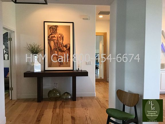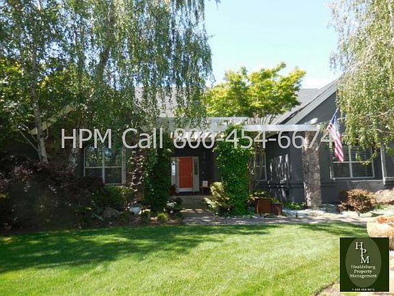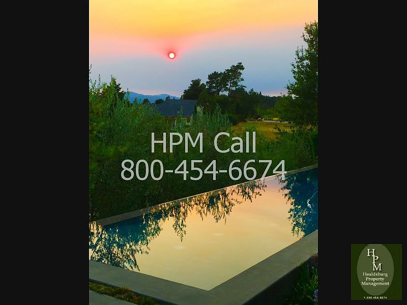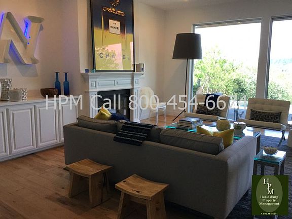 Healdsburg - stunning custom home at north end of Healdsburg near Parkland Farms. Furnished 3BR/2.5BA with pool, beautiful gardens and views. Home professionally styled by interior designer to meet the most discriminating of tastes. Walk into a formal sitting area to your right, sofa, chairs, TV. Straight ahead is great room featuring kitchen with stainless appliances - sub zero refrigerator, 5 burner gas range, double oven, microwave, dishwasher and wine refrigerator. Island with seating and also dining area for 6. Adjacent to kitchen is the open living room. Large, welcoming and bright floor to ceiling picture window completes a room with three sofas, fireplace and baby grand piano. Two bedroom suites have king and queen beds and a guest bedroom has a second queen. Outdoors is professionally landscaped with pool, fire pit and views of the hills. An automatic shade may be used to block western sun which keeps the outdoor seating area comfortable. Six month minimum, pool and gardening service included. Five minutes to downtown Healdsburg and access to popular biking roads such as Alexander Valley Road and Dry Creek Road.