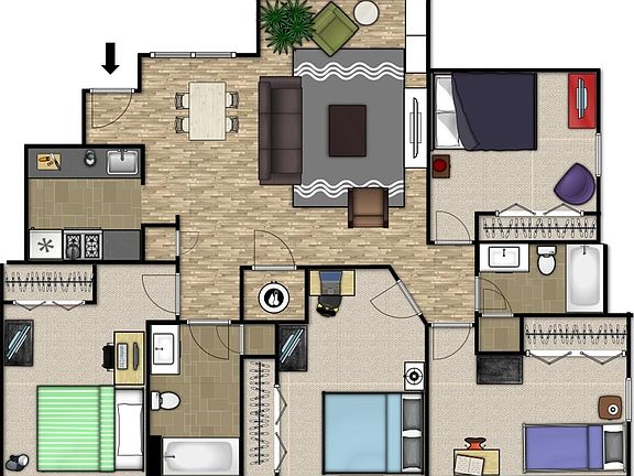 Available August 1! Remodeled 4 bedroom, 2 bath! Updated with wood flooring, new tile, updated cabinetry & updated vanities, modern paint, new fixtures, newer appliances, and updated carpeting. This apartment offers an open living area, hall storage, comfortable bedrooms, and large closets! Available as early as May 1 or as late as August 1!