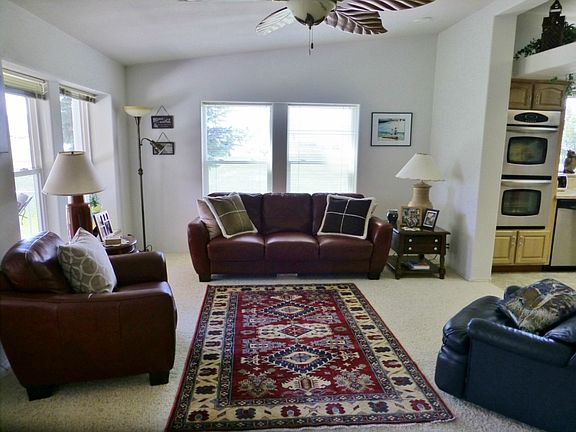 Beauty, Privacy & Productivity!Private setting, at the end of a lane, w/state land on one side & outstanding views on the other!Beautiful 1900 SF home(Bright open living spaces-nice new features),30 X 48 Garage(w/shop, 3/4 bath & hobby/guest rm) & 12ft Carport.Fenced pasture area, 3 stall barn w/tack rm & hay storage-all on 9.56 Irrigated Acres w/Timothy hay!Ample area for entertaining-the grounds have mature landscape that surrounds home.RV parking for visitors.Paved Driveway.Close to I-90/town