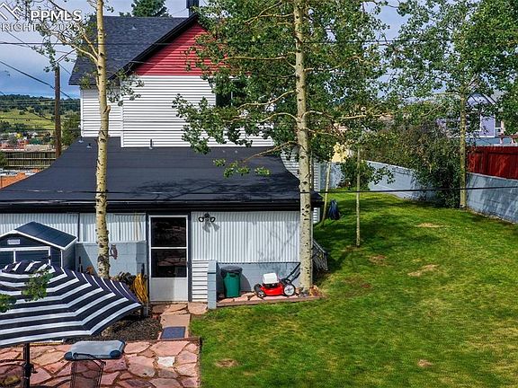 Step into Cripple Creek’s rich history with this lovingly restored 1901 Victorian, located on the renowned "Mackin Block." This fully furnished 4br, 2-ba home offers over 2,000 SF of living space, blending timeless elegance with modern upgrades. Restoration items include new roof, vinyl siding, enhanced insulation and 200 AMP electrical service with all new LVP flooring, carpet & paint throughout! A new water heater (2023) and furnace (2024) ensure comfort for years to come. The enclosed entryway welcomes you into a charming parlor and living room, branching into a formal dining room perfect for hosting. The gourmet eat in kitchen boasts top-of-the-line appliances, new countertops and updated fixtures creating a dream space for the family chef. All NEW modern spacious spa bath and an ample laundry room crown this masterful restoration. Upstairs, you will find four generously sized bedrooms and a beautifully updated full bath with a tub/shower combo. Outside the entirely enclosed backyard offers a serene retreat with a maintained lawn, flagstone patio area for entertaining and space to enjoy the crisp mountain air. Attached garage and automatic door provides substantial storage. Enjoy the benefits of a rare bonus section of the parcel offering multiple off-street parking spots for guests and large vehicles. Known as the historic "Mackin House," this property qualifies for Cripple Creek’s preservation program. Don’t miss this rare opportunity to own a piece of history!