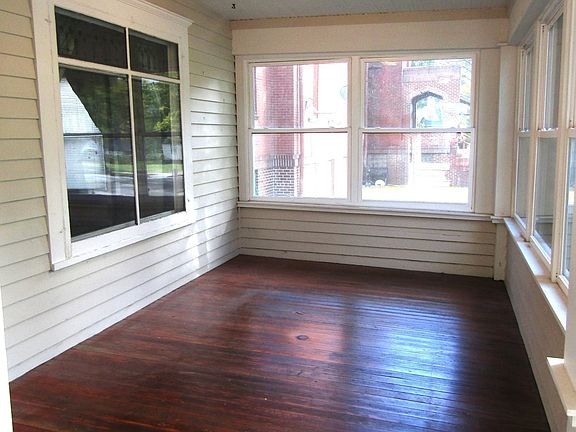 This American Foursquare Style home is a hidden treasure! Fall in love with this historic home from the moment you step into the lovely 3 season porch that has been raised and new front door & new dbl pane windows. Step through the double doors and discover the AMAZING hardwood floors and beautiful woodwork all throughout the home! The Livingroom is adorned with a leaded stained glass picture window, and column bases that separate it from the formal dining room. The swinging door leads you to a galley kitchen with stainless steel appliances that are less than 4 years old. Head up stairs and discover the beautiful custom designed full bathroom adorned with tiled walls & floor, and new toilet and shower. Four spacious bedrooms are also on the upstairs level. The spacious attic is yours to finish! Truly a must see! The basement offer laundry plus plenty of space to finish as you choose. The back porch leads to a detached 2 car garage & outdoor fire pit. Being sold "AS IS".