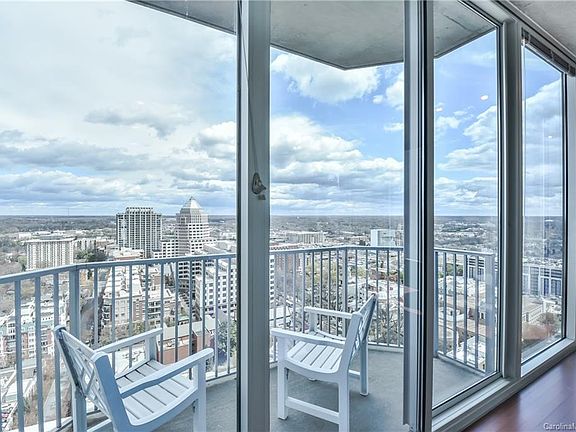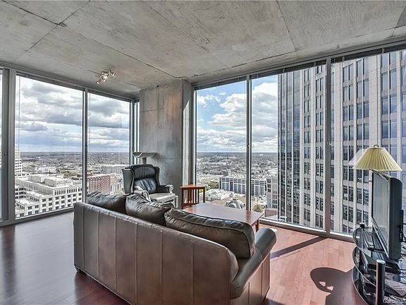 Center city living at it's best! Hard wood floors, cool concrete ceilings, floor-to-ceiling windows, corner unit, & custom lighting all add to hip feel! Dual master suites! Open floor plan! Kitchen features stainless steel appliances, bar seating, granite counters, subway tile back splash. Some of the best views Charlotte has to offer from balconies. Single parking space is oversized & protected on each side! Roof top pool, media room, lounge, fire pit, fitness center, among the many amenities!