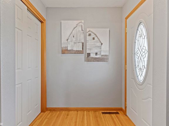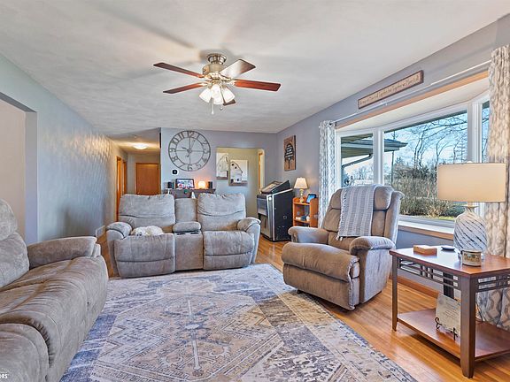 This property is currently listed as a Delayed Showing. Under no circumstances will any showings be allowed until December 16th, 2023 at 8am. The seller will not accept any offers earlier than 10pm on the first showing date. Nestled on just under 4 acres, this meticulously maintained ranch home embodies the perfect blend of comfort, convenience, and countryside allure. As you step inside, the home's interior unfolds with an open and inviting floor plan. Natural light floods the living room through large windows, accentuating the warm tones of the hardwood floors. The adjacent dining area and completely remodeled kitchen create a perfect flow for entertaining or family meals, with modern appliances and ample counter space for culinary enthusiasts. 3 bedrooms and 1.5 bathrooms complete the main level. Newer windows throughout that eliminate any external noise, making this home a true peaceful haven. The lower level is the perfect bonus space for you to customize to your liking. Relax on the spacious back deck that overlooks the acreage that offers possibilities for gardening, outdoor recreation, or even space for an additional workshop or barn. There's already two on the property for you! One with double garage doors, electricity, and a lofted storage area.