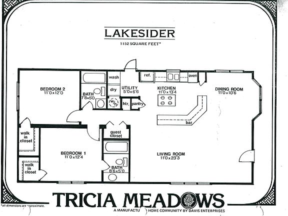 This Beautiful "Lakesider Model" Home Backs right up to The Tricia Meadow Pond & Features: 2 Bedrooms 2 Full Baths Double Door Refrigerator w/ Ice Maker Double Wall Ovens Electric Glass Cook Top in Center Island NEW Dishwasher NEW Kitchen Sink Garbage Disposal NEW Counter Tops Stackable Washer/Dryer Utility Laundry Sink 3 Ceiling Fans Front Door/ Keyless Entry Wired Alarm System ALL Window Treatments (Incld) Pull Down Attic Steps (for Storage) Laminet Wood Floors in the Dining Room, Kitchen & Hall & Living Room 12 X 16 Florida Room w/ Ventless Gas Fireplace & Separate A/C Fenced Yard Backing to 5 Acre Pond w/ Private 4 x 6 Dock for Fishing/Boating Sprinkler System 10 X 10 Deck Ducane Gas Grill & Select Outdoor Furniture (Incld.) 4 Car Driveway Carport 8 x 10 Shed w/ Electric This is definately something you will have to act QUICKLY on!! Location and Price will move this home FAST!! CALL OR STOP IN TODAY TO SEE FOR YOURSELF!! A REAL MUST SEE!!