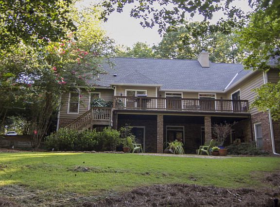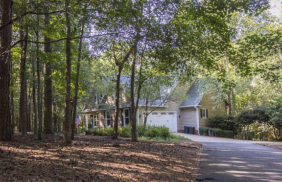 A delightful 5BR/5BA home nestled privately among the trees! This updated property has 3 bedrooms & 3Baths on the main level with an open floor plan, hardwood floors, stunning kitchen, a large master suite, & a deck overlooking the woods. Located downstairs are a game room, a media room or den with brick floors, 2 additional bedrooms & 2 baths, plus several storage areas. A beautifully landscaped yard, stone walkways, and a pretty creek compliment this property!