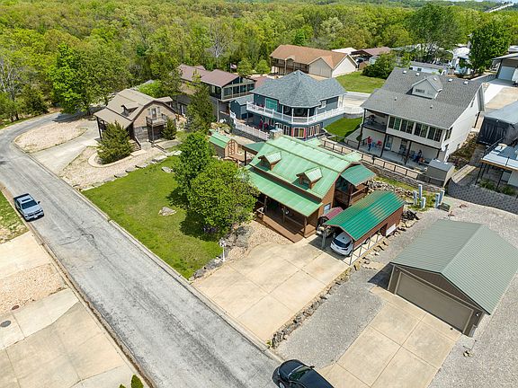 Nestled within the tranquil Forest Park enclave adjacent to the Treasure Lake RV Resort lies this immaculate cabin, exuding rustic charm with its log siding and expansive surroundings. Situated on one of the largest lots in the area, this retreat offers unparalleled serenity in the heart of bustling Branson. Step onto the inviting wrap-around porch, thoughtfully designed with a ramp for accessibility, and enter into the spacious Living Room, featuring a warm wood-burning fireplace, perfect for cozy evenings. The soaring tongue and groove ceiling and rich hardwood floors throughout create an atmosphere of natural elegance, enhancing every corner of the home. The well-appointed kitchen boasts ample cabinet space, ideal for hosting gatherings, a sizable island, and convenient access to the covered/open patio, extending your entertainment options outdoors. The main level primary bedroom is complemented by a generously-sized bathroom with a no-trip walk-in shower, ensuring both comfort and convenience. Upstairs, a versatile loft area awaits, perfect for use as an office or additional living space, while the upper bedroom offers its own private bath and deck, providing a peaceful retreat with scenic views. Outside, the property features a covered deck, patio, and a storage shed with electricity, offering ample space for outdoor enjoyment. The expansive driveway accommodates up to five vehicles and includes an additional workshop, catering to various needs. With full RV hookups available, this property offers the ultimate in flexibility and convenience. Furthermore, the option to transfer the Treasure Lake membership provides access to a plethora of amenities including indoor/outdoor pools, tennis courts, mini golf, clubhouse, and more. Experience the vibrant community atmosphere with events such as bingo night, live music, and fitness activities, all within reach. With membership dues at an affordable rate of $180 annually. Forest park HOA dues are only $150 a year and