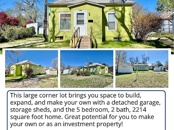 This large corner lot brings you space to build, expand, and make your own with a detached garage, storage sheds, and the 5 bedroom, 2 bath, 2214 square foot home. Great potential for you to make your own or as an investment property!