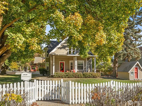 Experience the warmth and character of this beautifully maintained 1920 home, just minutes from downtown Ellensburg and CWU. Vintage millwork, hardwood floors, and built-ins pair with an updated chef’s kitchen open to the dining area and den. Upstairs offers new carpet and a spacious primary suite with en-suite bath. Mature maples and fencing provide privacy on the oversized corner lot with a fully fenced backyard, paver patio, fire pit, and detached garage. Recent updates include a new oven, gas line work, tree care, and refreshed fencing. Move-in ready with classic Ellensburg charm.