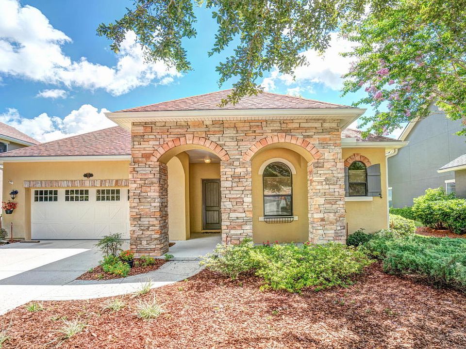 Beautiful stucco home situated on a cul-de-sac with a view of the pond and fountain, this home includes custom white cabinets with solid surface counter tops, hardwood floors in the kitchen, great room and dining room. Beautiful rounded bay windows in the dining room and master bedroom. House has been freshly painted, carpets been cleaned, exterior home has been pressured washed. This home is well maintained. Motivated Sellers!